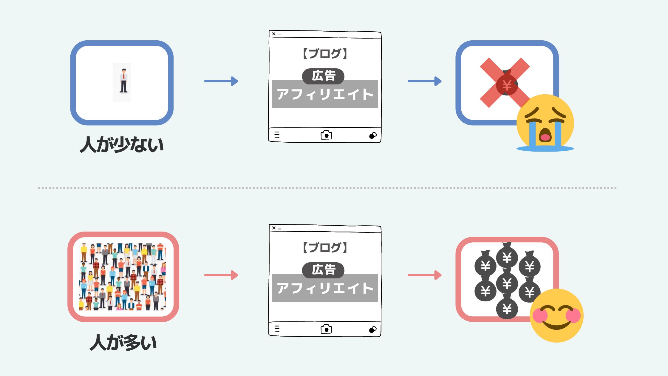 ブログ初心者の中には、まず「アフィリエイト」を始めてから「アクセス数」を増やそう。と考える人が多いですが、まずはアクセスを集める記事を書くことに専念し、アクセス数が多い記事ができたら、そこにアフィリエイトリンクを貼りましょう。私もこの順番に変えてから収入が一気に伸びました。
