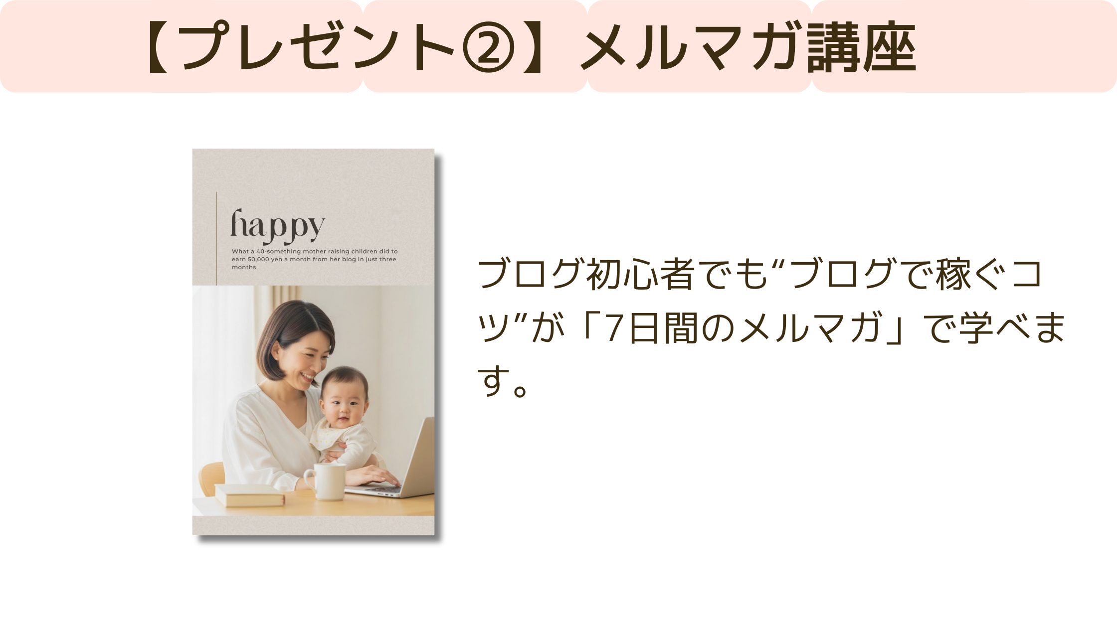 登録いただいたメールアドレスに、無料で【メルマガ講座】をお送りします。