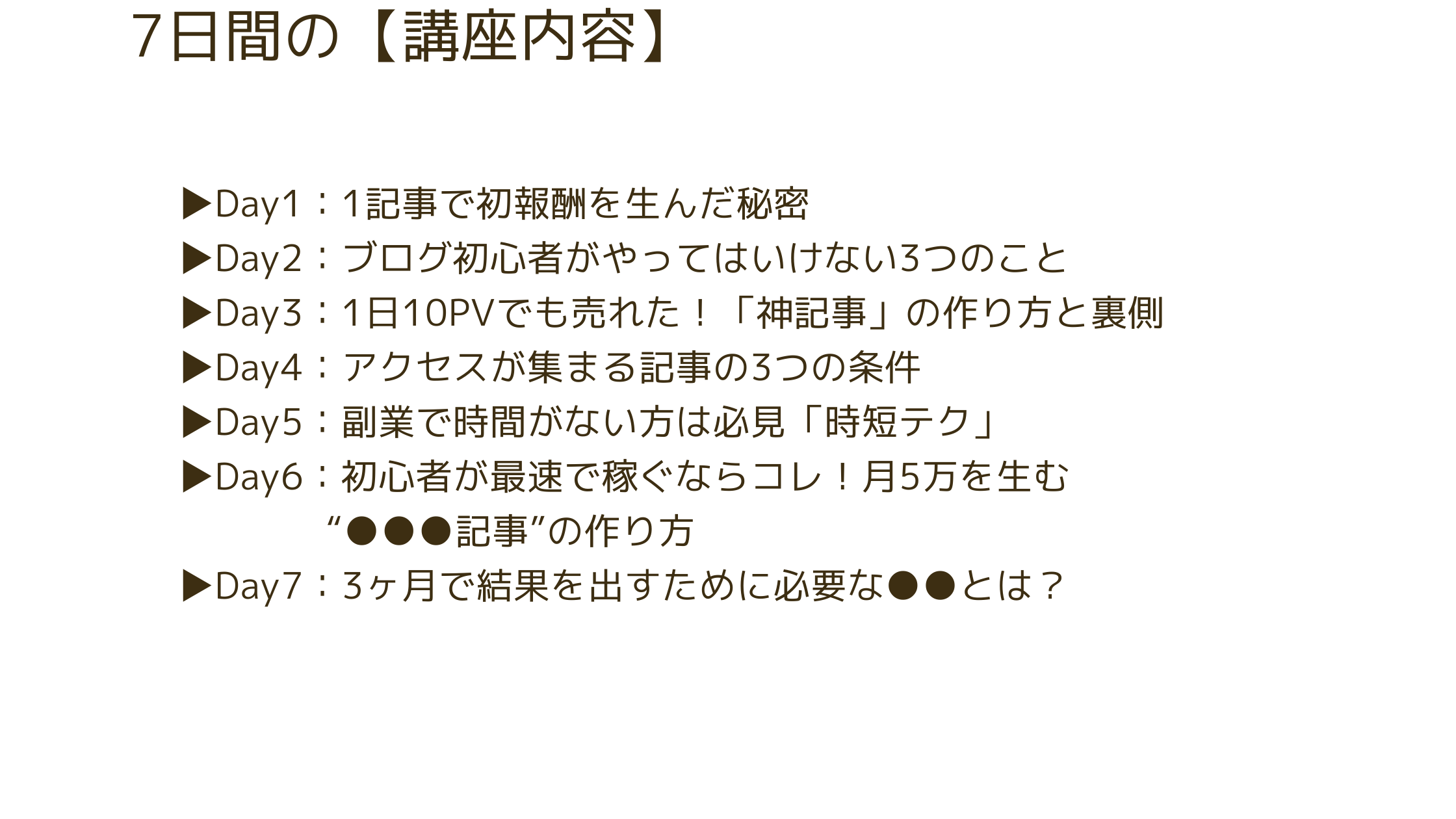 ブログ初心者が迷わず稼ぎ始められる“具体的な行動ステップ”を7日間に凝縮しました。