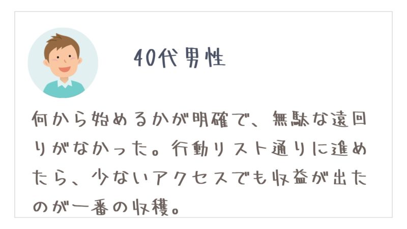 鈴木さんも、まさに同じ状況でした。コツコツ続ける習慣が大事なので、忙しい日は5分でも良いので作業を継続することが大切です。コツコツと積み重ねた結果、月5万円を達成できました。